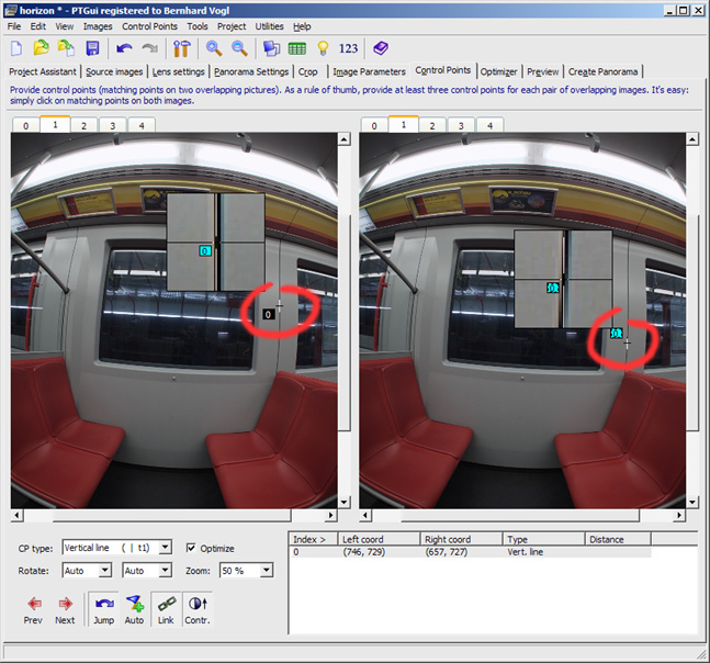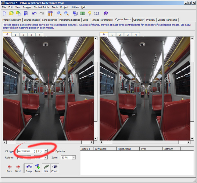 Bild zur Ansicht. Sie werden bemerken, daß PTGui den Kontrollpunkt-Typ